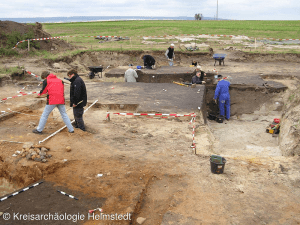 Von 2002 bis 2010 wurden jedes Jahr im Sommer und Herbst unter der Leitung der Kreisarchäologie Helmstedt Ausgrabungen durchgeführt. Hierbei wurden gezielt mehrere Grubenhausgrundrisse ausgewählt, die vermutlich zu einem Gehöft gehört haben. Nach dem Abtrag des Mutterbodens zeichnen sich im hellen Sand und Kies des Untergrundes die Grundrisse der verfüllten Hausgruben deutlich ab.