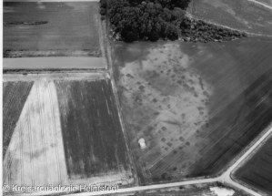 Ein archäologisches Luftbild von 1992 lieferte den ersten Hinweis auf eine mittelalterliche Siedlung. Auf ca. 2 Hektar waren fast 80 rechteckige Grundrisse von ca. 12-20 m² zu erkennen. Vermutlich waren es Grubenhäuser, deren Fußboden zwischen 30 cm und 1 m in den Boden reichten.