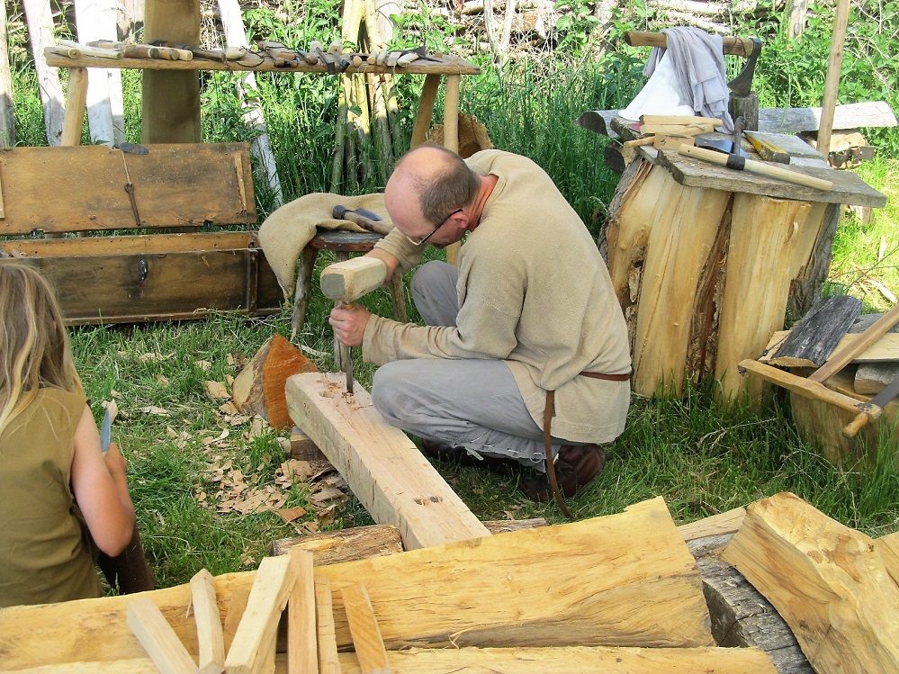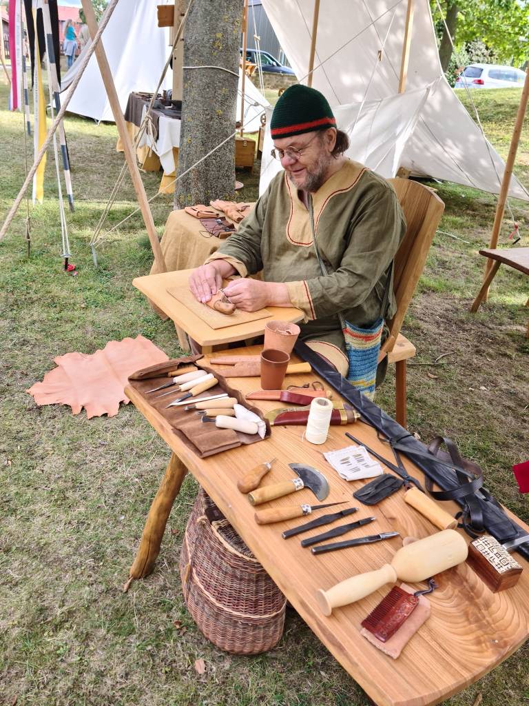 Auch das Schmieden, Holz- und Lederbearbeitung und anderes werden in wechselnder Besetzung gezeigt.